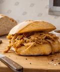 Il nostro Pulled Pork nasce da una lavorazione lenta, dove il tempo diventa ingrediente principale. La carne viene cotta a bassa temperatura fino a diventare tenera, succosa, naturalmente sfilacciabile.